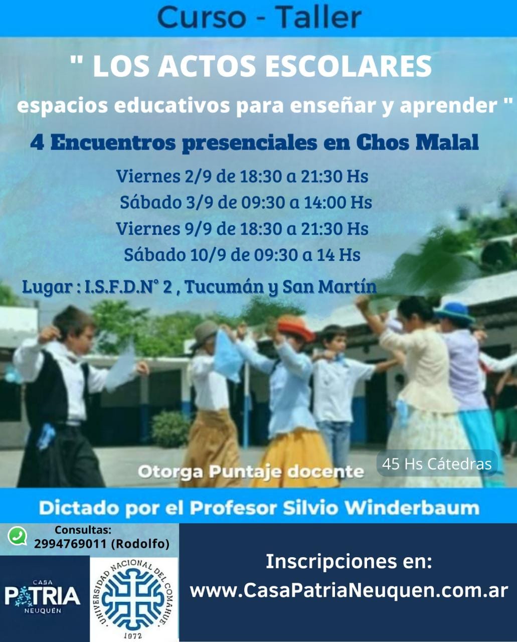 Los “ACTOS ESCOLARES, espacios colectivos para enseñar y aprender”, nuevo curso PRESENCIAL en Chos Malal.